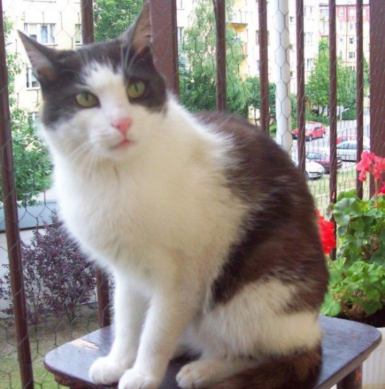 Kocur Felix mieszkał pod krzakiem na przykościelnym parkingu. Podchodził do ludzi, łasił się i pewnie czasem dostał coś do jedzenia. Przeważnie był głodny  -  pamięta o tym, zawsze miseczkę wymiata miseczkę do czysta. Jest wyraźnie domowym kotem  -  wie, do czego służy fotel, kanapa i kuweta. Ładuje się bezceremonialnie na kolana, łazi za człowiekiem. Lubi być noszony na rękach, dopomina się o pieszczoty Zachowuje się tak, jakby mieszkał tu od zawsze. Z moimi kotami dogadał się od razu. Ale nie może zostać  -  jest ich za dużo, a on potrzebuje człowiek na wyłączność.  Ma może 1,5roku, jest wykastrowany, odrobaczony,  ma książeczkę zdrowia.